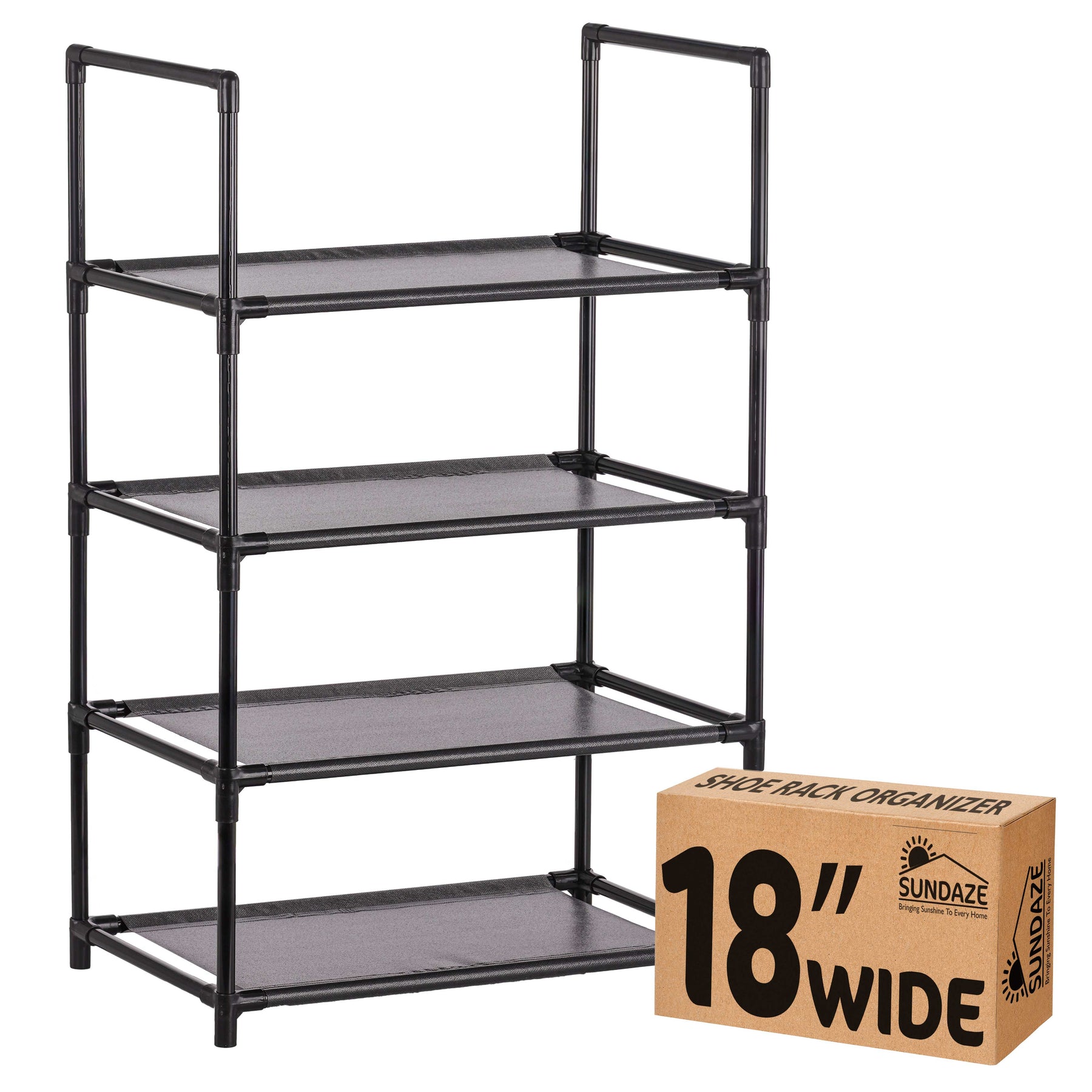 Compact Shoe Rack Organizer: 4 tier narrow shoe rack holds 8-12 pairs of shoes. Perfect shoe shelf for front door entrance, closet, bedroom, or any vertical space. Dimensions: 18.3"L x 28.5"H x 11.5"D.